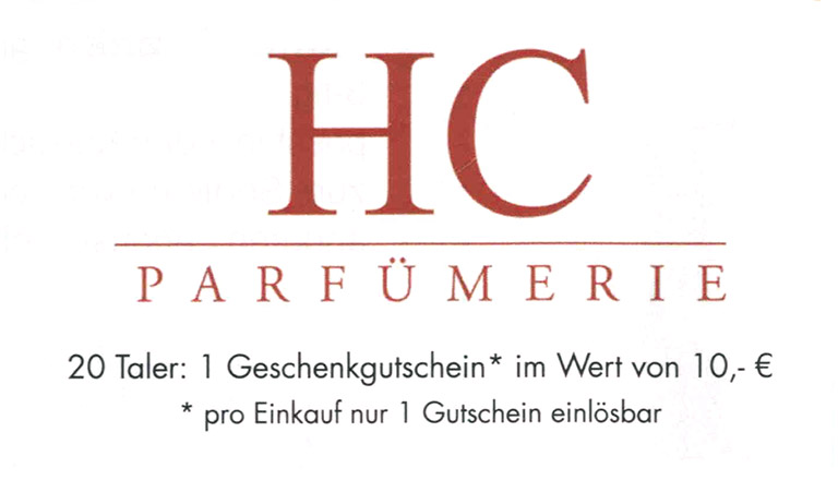 * Beim Kauf von Kosmetikartikeln, Körperpflegeprodukten und Nahrungsergänzungsmitteln. Aus gesetzlichen Gründen dürfen beim Kauf von rezeptpflichtigen Arzneimitteln keine und beim Kauf von Heilmitteln (apothekenpflichtige Arzneimittel, freiverkäufliche Arzneimittel, Medizinprodukte) Taler im maximalen Gegenwert von 1 € gewährt werden.